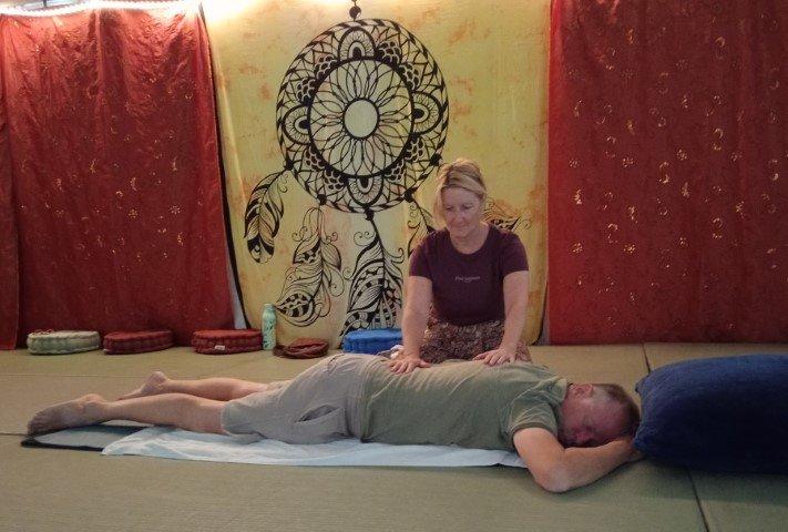 Geurende dit zomerseizoen bij VakantieAnders heb twee soorten massage workshops gegeven. De ene is de traditionele met olie op de huid. Dan geven de deelnemers elkaar een massage. Veel mensen vinden dat heerlijk en komen graag mee doen. Vooral rug, voeten en nek/schoudermassages zijn populair. Dat verloopt altijd goed en na afloop verlaat eenieder weer ontspannen de workshoptent. Heel fijn natuurlijk. Deze workshop houd ik erin in allerlei variaties. Deze mensen hebben weinig moeite met aanrakingen.