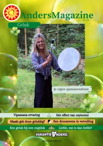 Geluk komt en gaat, vaak op momenten waarop je stilstaat bij wat er al is. Dankbaarheid en geluk gaan vaak hand in hand. Geluk is het thema van dit AndersMagazine. Liefde, verbindingen, meditatie, gek doen, ongelukken en zelfs soep verhogen je geluksgevoel dat van binnen ontstaat. Op de cover Anita met haar drum, een van haar gelukbronnen.